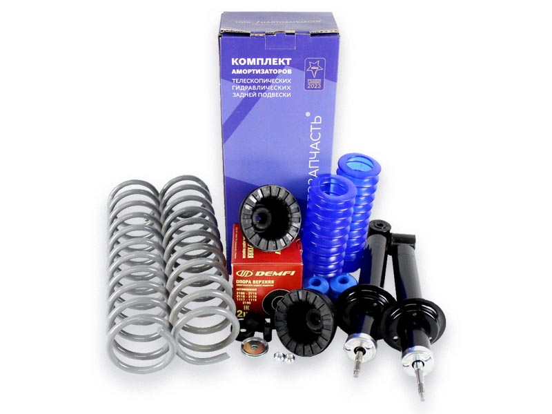 Цельный комплект из задних амортизаторов НИКОН, опор Demfi Premium в комплекте с элементами установки, а так же пружин.