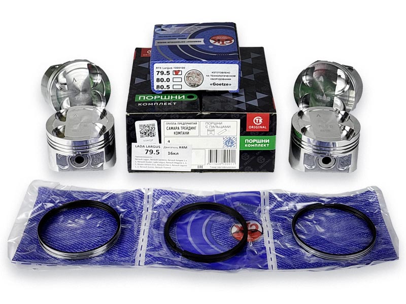 Комплект поршней с пальцами СТК 79.5 "Д" для Ларгус с двигателем Renault K4M (16кл.), с кольцами Herzog