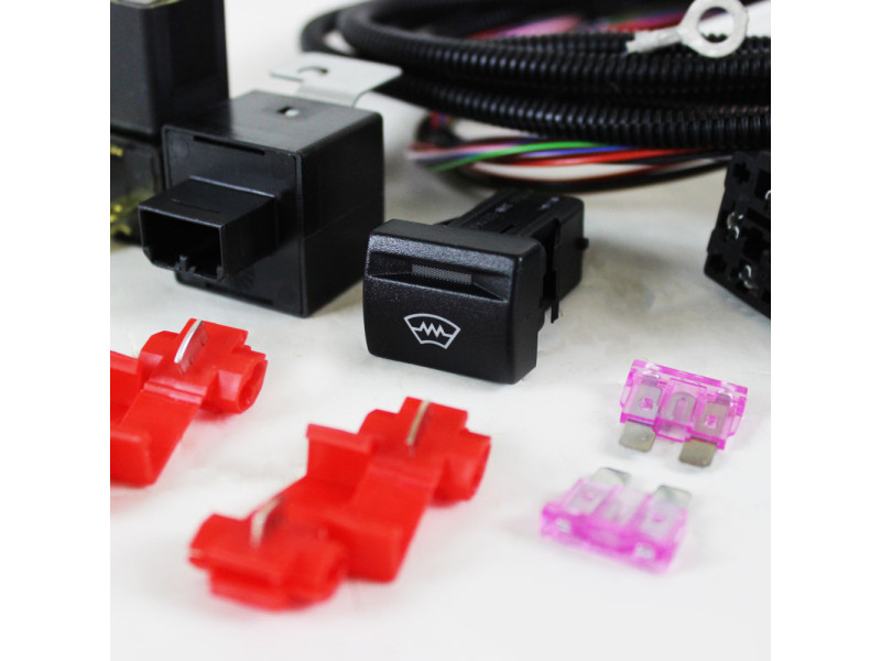 Лобовое стекло с обогревом дает возможность быстро отогреть стекло зимой от наледи, поможет от обледенения на трассе, позволит быстро отпотеть стеклу при спуске в гараж зимой. Этот монтажный набор поможет вам быстро и легко подключить ветровое стекло с обогревом, проводка имеет все нужные клеммы и реле, также проводка обернута противоскрипной лентой и убрана в гофру для большей надежности.