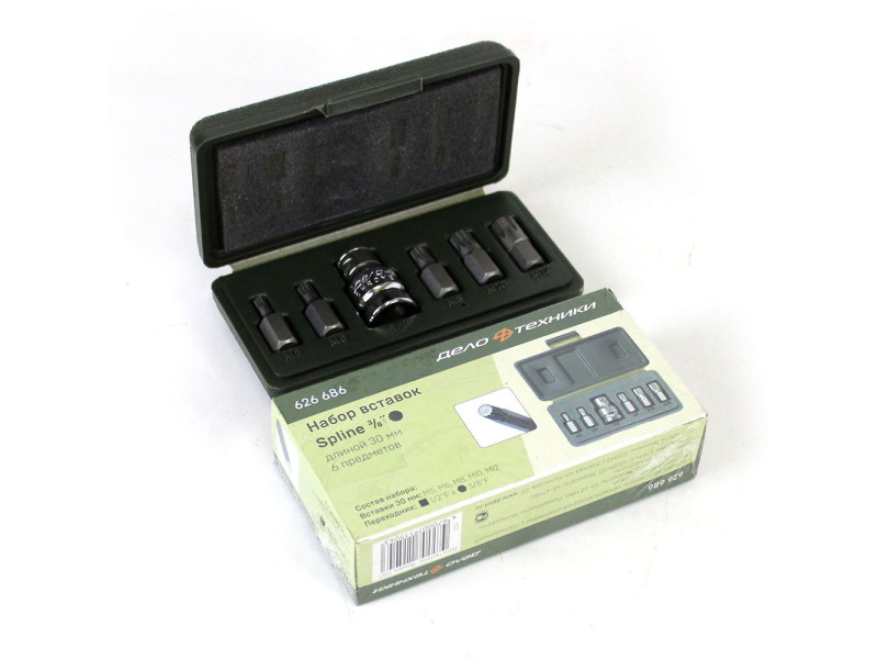 Набор бит SPLINE Дело Техники 626686 применяется для монтажа/демонтажа резьбовых соединений с соответствующим профилем SPLINE с помощью ручного инструмента или гайковерта.